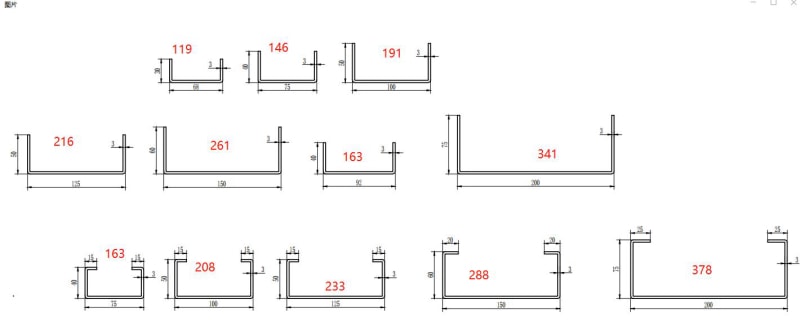 上面的紅色數字是3mm厚度的輸入材料寬度。